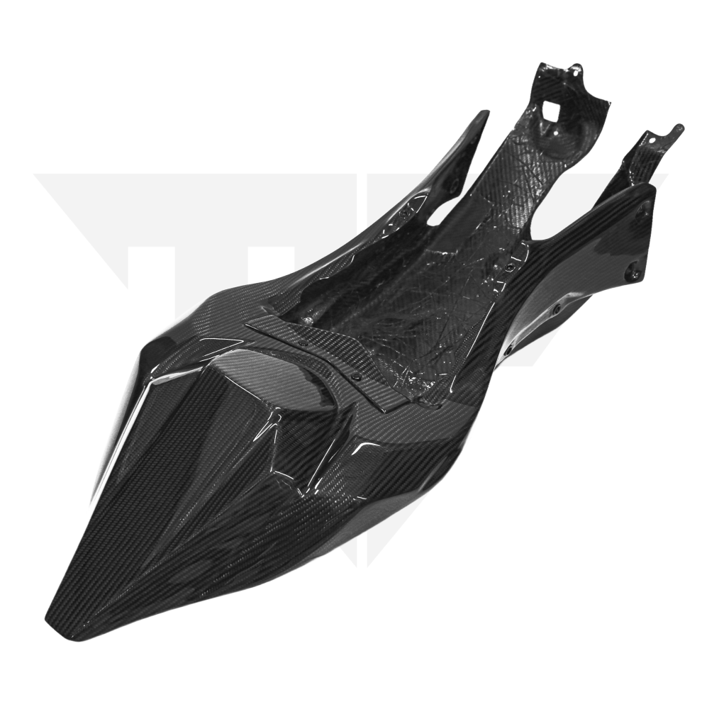 Motorfix Kawasaki ZX10R/RR 2021+ Overtail with Subframe combines aggressive styling with functional design for your sport bike. This premium carbon fiber component weighs approximately 1.540 kg, offering a lightweight upgrade without compromising durability. Comes with bottom cover. Choose your perfect setup with three LED options—no LED for a clean aesthetic, single LED for subtle accent lighting, or triple LED for maximum visibility and impact. Transform your ZX10R's rear end with confidence.